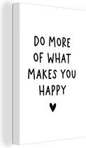 Tableau sur toile Citation anglaise Faites plus de ce qui vous rend heureux avec un coeur sur fond blanc - 120x180 cm - Décoration murale XXL