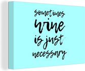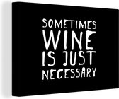 Tableau Peinture sur toile Citation fond noir Parfois le vin est juste nécessaire - 180x120 cm - Décoration murale XXL