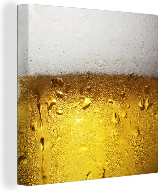 Tableau Peinture sur Toile Débordant Verre de Bière avec Condensation - 90x90 cm - Décoration murale
