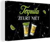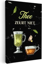 Tableau Peinture Thee - Verres - Feuilles - 120x180 cm - Décoration murale XXL - Cadeau Vaderdag - Cadeau - Cadeau pour Lui - Astuce - Homme