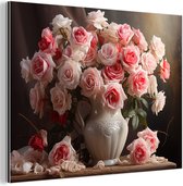 Tableau sur aluminium 80x60 cm - Décoration murale en métal - Bouquet - Nature morte - Fleurs - Plantes - Rouge - Décoration murale en métal pour salon - Décoration industrielle - Photo sur Dibond - Accessoires industriels pour chambre
