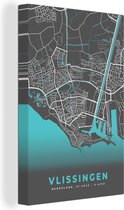 Tableau sur toile Carte de ville - Vlissingen - Grijs - Blauw - 120x180 cm - Décoration murale XXL