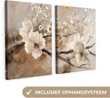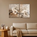 Tableau sur toile 120x80 cm - Décoration murale diptyque - Blossom - Beige - Abstrait - Fleurs - Décoration murale salon - Décoration chambre - Accessoires chambre - Peintures sur toile