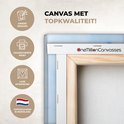 La photo est imprimée sur une toile robuste de 260 grammes de 0,41 mm d'épaisseur. Le lin est tendu étroitement sur un cadre en bois de deux centimètres d'épaisseur. Ce cadre en bois est fabriqué à partir de bois de pin de qualité approuvé FSC. Le produit est livré avec un système de suspension standard pour fixer facilement l'impression au mur.