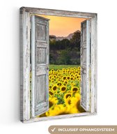 Tableau sur toile 120x90 cm - Décoration murale Vue - Fleurs - Tournesol - Décoration murale salon - Décoration chambre - Accessoires chambre - Peintures