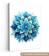 Peintures sur toile - Mandala - Blauw - Wit - Fleurs - Salon - Chambre