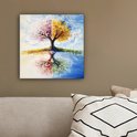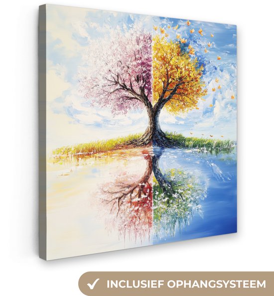 Tableau sur toile 20x20 cm - Décoration murale Arbre - Art - Saisons - Printemps - Automne - Décoration murale salon - Décoration chambre - Accessoires chambre - Peintures sur toile