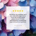 La photo est imprimée sur une toile robuste de 260 grammes de 0,41 mm d'épaisseur. Le lin est tendu étroitement sur un cadre en bois de deux centimètres d'épaisseur. Ce cadre en bois est fabriqué à partir de bois de pin de qualité approuvé FSC. Un système de suspension peut être commandé en option avec le produit pour fixer facilement l'impression au mur.