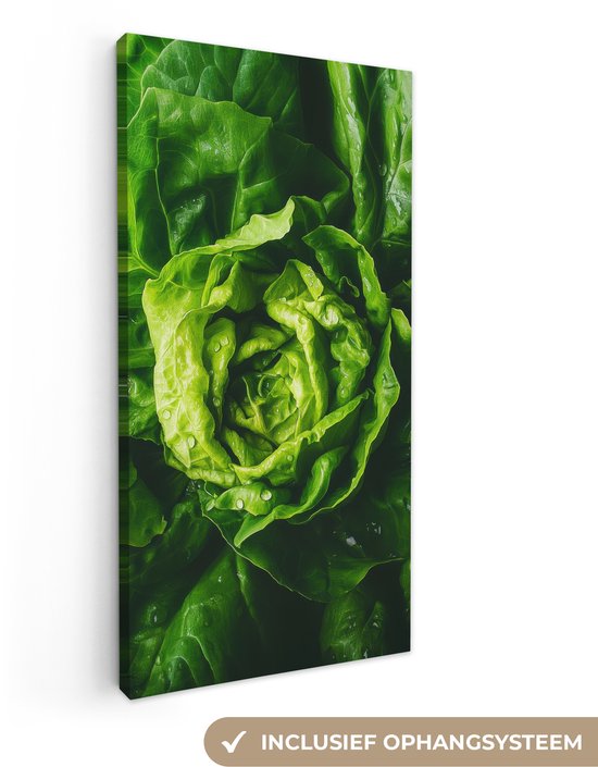 Tableau sur toile 40x80 cm - Décoration murale exclusive Légume - Laitue - Vert - Décoration murale salon - Décoration chambre - Accessoires chambre - Peintures sur toile