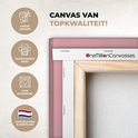 La photo est imprimée sur une toile robuste de 260 grammes de 0,41 mm d'épaisseur. Le lin est tendu étroitement sur un cadre en bois de deux centimètres d'épaisseur. Ce cadre en bois est fabriqué à partir de bois de pin de qualité approuvé FSC. Un système de suspension peut être commandé en option avec le produit pour fixer facilement l'impression au mur.