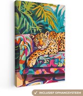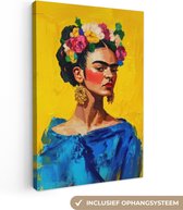 Tableau sur toile 80x120 cm - Décoration murale Colorée - Rose - Oranje - Jaune - Fleurs - Décoration murale salon - Décoration chambre - Accessoires chambre - Peintures sur toile
