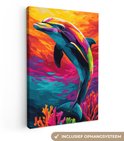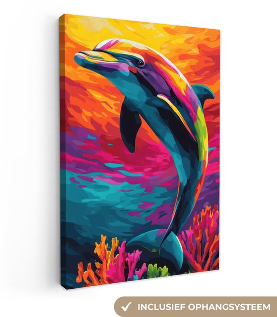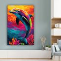 Tableau sur toile 80x120 cm - Décoration murale Dauphin - Coloré - Océan - Corail - Décoration murale salon - Décoration chambre - Accessoires chambre - Peintures sur toile