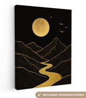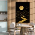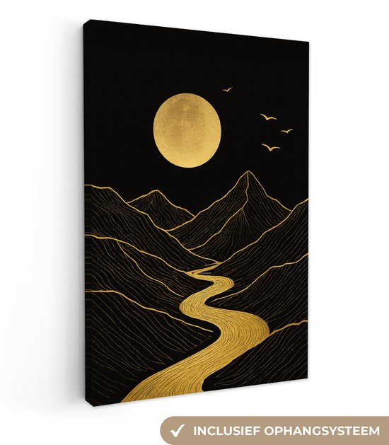 Tableau sur toile 80x120 cm - Décoration murale exclusive Rivière - Or - Lune - Vogels - Décoration murale murale salon - Décoration chambre - Accessoires de décoration - Peintures sur toile