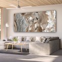 Tableau sur toile abstrait - Marbre - Wit - Marron - Aspect marbre - 160x80 cm - Décoration murale