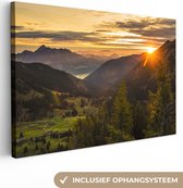 Tableau sur toile Alpes - Lac - Soleil - 80x160 cm - Décoration murale