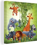 Tableau sur toile Animaux de la jungle - Plantes - Enfants - Éléphant - Girafe - Lion - 20x20 cm - Décoration murale