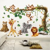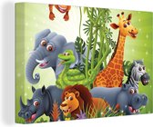 Tableaux sur toile - Animaux de la jungle - Plantes - Enfants - Éléphant - Girafe - Lion - Salon - Chambre