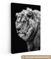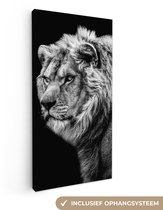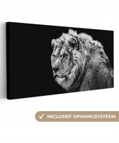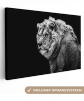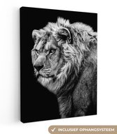 Tableau sur toile - Animaux sauvages - Lion - Zwart - Wit - Décoration murale - Toile - 80x60 cm - Toile canvas - Salon