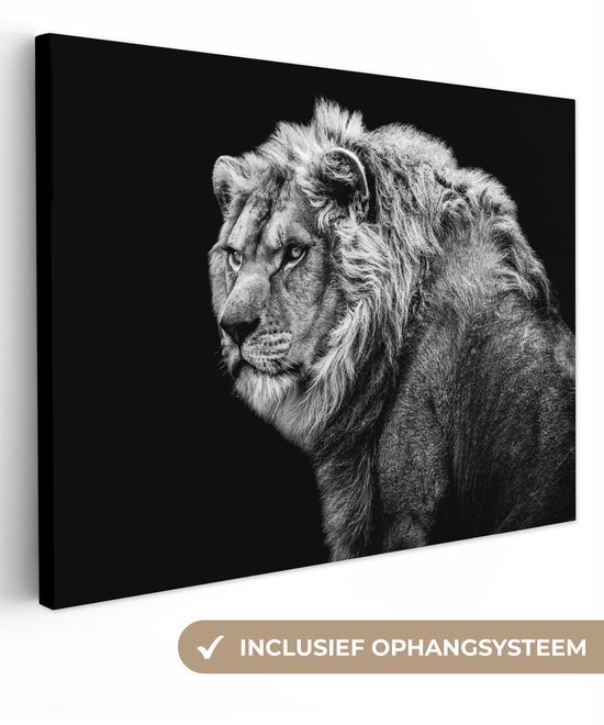 Ben vous un amoureux des animaux? Alors cette toile est vraiment quelque chose voor jou! La toile montre une image en noir et blanc d'un lion.