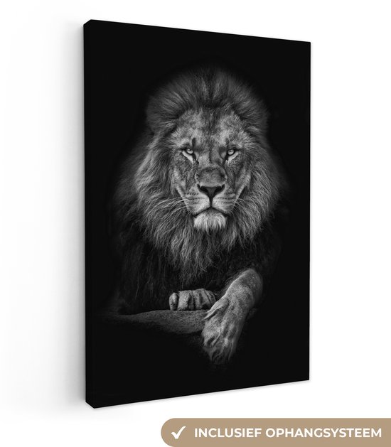 Tableau sur toile - Animaux sauvages - Lion - Zwart - Wit - Toile sur toile - Tableau sur toile - 80x120 cm - Salon - Décoration murale