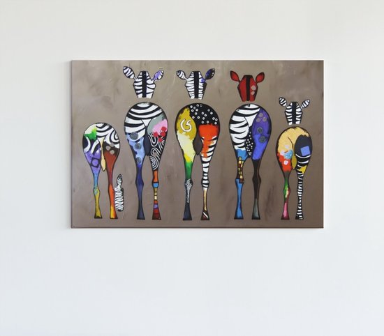 Tableau sur toile - Animaux - Zèbres colorés - 150x100x2 cm