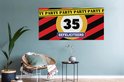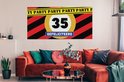 Panneau routier avec l'âge « 35 ans » et le texte « Félicitations » pour une fête d'anniversaire.