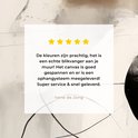 J'ai commandé cette toile qui était du même style que la précédente qui provenait également de Bol.com. La toile précédente (qui était dans la même gamme de prix) était clairement de bonne qualité. Cette nouvelle toile a été décevante pour moi, je pense que c'est une belle combinaison de couleurs, mais quand je l'ai reçue et accrochée au mur, j'ai tout de suite vu que la toile elle-même était d'une qualité plus claire et on peut voir le cadre en bois dans le la lumière du jour. voir à travers le tissu.