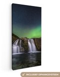 Tableau sur Toile Aurores Boréales - Cascade - Islande - 40x80 cm - Décoration murale