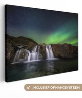 Peinture sur toile - Ciel étoilé - Cascade - Aurores boréales - Rochers - Paysage - Décoration murale - Toile - 80x60 cm - Toile