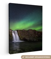 Peinture sur toile - Ciel étoilé - Cascade - Aurores boréales - Rochers - Paysage - Décoration murale - Toile - 60x80 cm - Toile