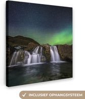 Peinture sur toile - Ciel étoilé - Cascade - Aurores boréales - Rochers - Paysage - Décoration murale - Toile - 50x50 cm - Toile