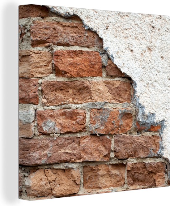 Tableau sur toile Brique - Plâtre - Mur - 90x90 cm - Décoration murale