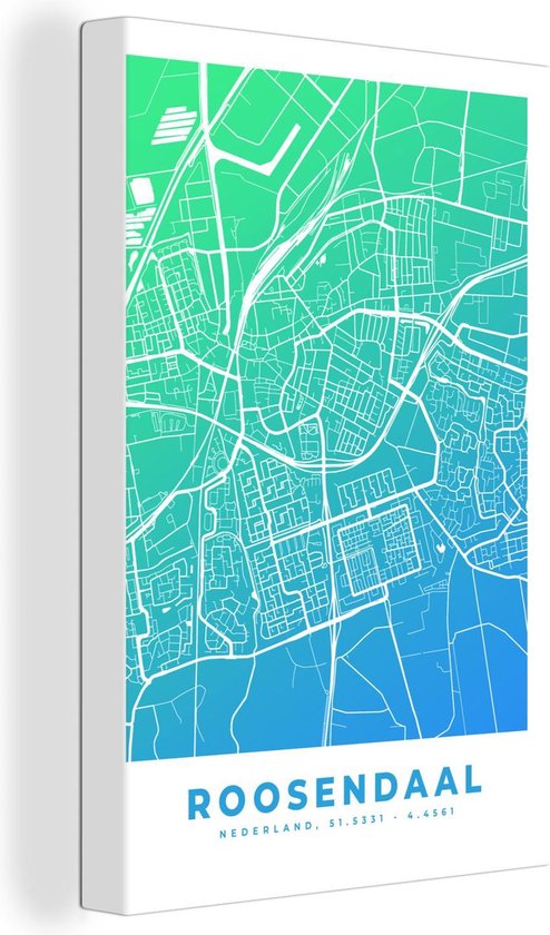Tableau sur toile Carte de ville - Roosendaal - Nederland - Blauw - 40x60 cm - Décoration murale