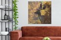Tableau sur toile Cerf - Bois - Automne - 90x90 cm - Décoration murale