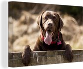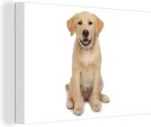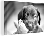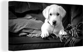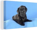 Tableau sur toile Chiot Labrador sur couverture bleue - 150x100 cm - Décoration murale