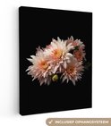 Tableau sur toile Chrysanthème - Fleurs - Wit - Nature - Zwart - 90x120 cm - Décoration murale
