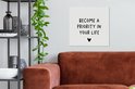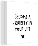 Tableau sur toile Citation anglaise Devenez une priorité dans votre vie avec un coeur sur fond blanc - 50x50 cm - Décoration murale