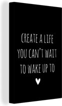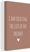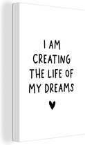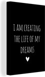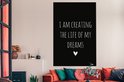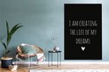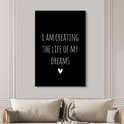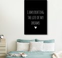 Tableau sur toile Citation anglaise Je crée la vie de mes rêves sur fond noir - 120x180 cm - Décoration murale XXL