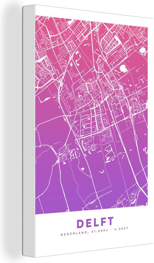 Tableau sur Toile City Map - Delft - Violet - 120x180 cm - Décoration murale XXL