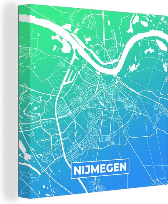 Tableau sur Toile City Map - Nijmegen - Vert - Blauw - 20x20 cm - Décoration murale