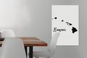 Aloha! L'état d'Hawaii n'est pas appelé le "paradis du Pacifique" pour rien. Avec son climat tropical, ses plages de sable blanc nacré et sa mer bleu azur, ce magnifique archipel est un véritable paradis sur terre. Cette décoration murale représente les îles de l'état en noir sur fond blanc. A côté de l'alignement des îles, le naam "Hawaii" est écrit en gracieuses lettres noires. En raison du contraste de l'imprimé noir foncé sur un fond blanc immaculé, chaque détail saute de la toile ! Cette illustration prend tout son sens dans le salon.