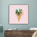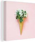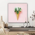 Tableau sur toile Cornet de Glace - Fleurs - Nature Morte - 50x50 cm - Décoration murale
