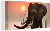 Toile Peinture Éléphant - Aquarelle - Oranje - 120x90 cm - Décoration murale