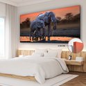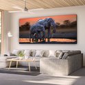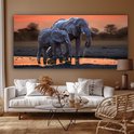 Tableau sur toile Deux éléphants au coucher du soleil - 160x80 cm - Décoration murale Art