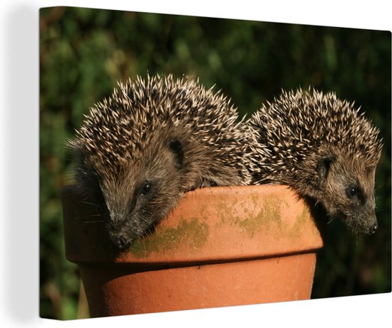 Tableau sur toile Deux hérissons sur un pot - 150x100 cm - Décoration murale