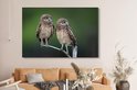 Tableau sur toile Deux hiboux des cavernes sur une branche - 150x100 cm - Décoration murale