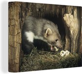La photo est imprimée sur une toile robuste de 260 grammes de 0,41 mm d'épaisseur. Le lin est tendu étroitement sur un cadre en bois de deux centimètres d'épaisseur. Ce cadre en bois est en bois de pin certifié PEFC de qualité. Un système de suspension peut être commandé en option avec le produit pour fixer facilement l'impression au mur.