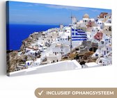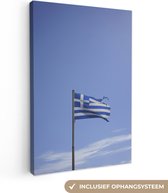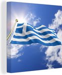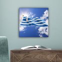Tableau sur toile Drapeau de la Grèce un jour ensoleillé - 20x20 cm - Décoration murale