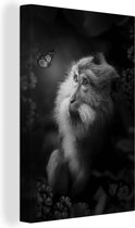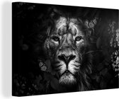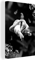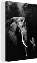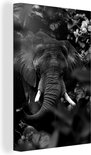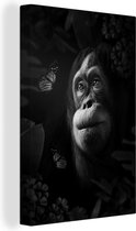 Tableau sur toile Éléphant et papillons dans la jungle - noir et blanc - 40x60 cm - Décoration murale