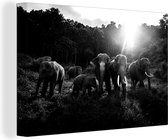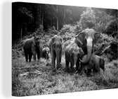 Tableaux sur toile - Éléphant et papillons dans la jungle - noir et blanc - Salon - Chambre